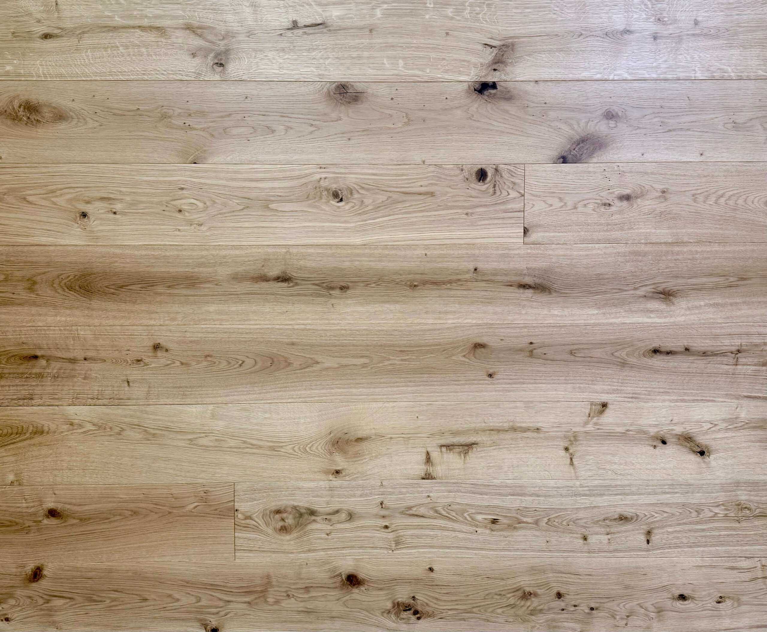 - Rustic Grade Finish: Lightly brushed to emphasize the natural grain, this flooring’s rustic-grade surface boasts a welcoming texture with the unique charm of light oak variations.