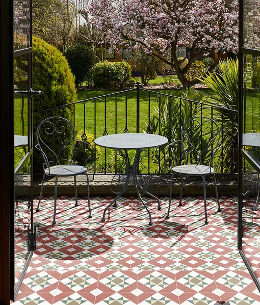 Inject character and interest into your space with the patterned Georgian Rosso porcelain wall and floor tile.